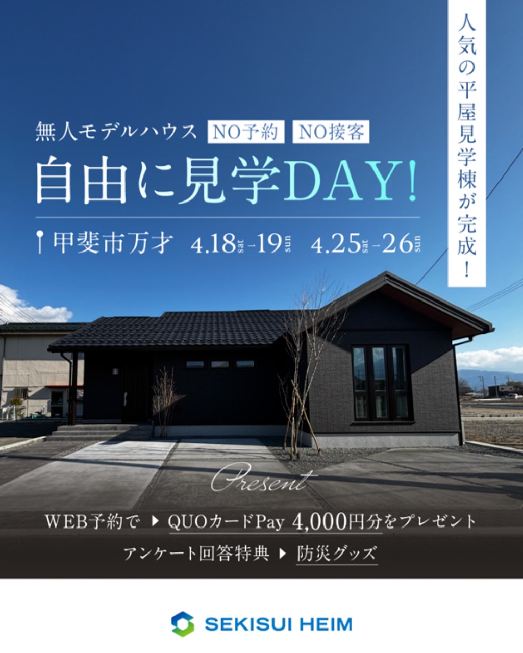 WEB予約のうえ、ご来場いただいたお客様に【QUOカード Pay4,000円分】プレゼント