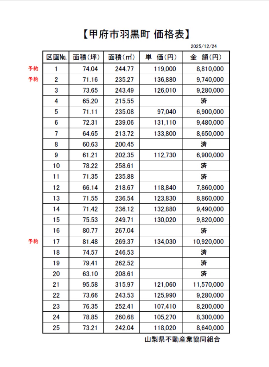 【分譲地】甲府市羽黒町25区画