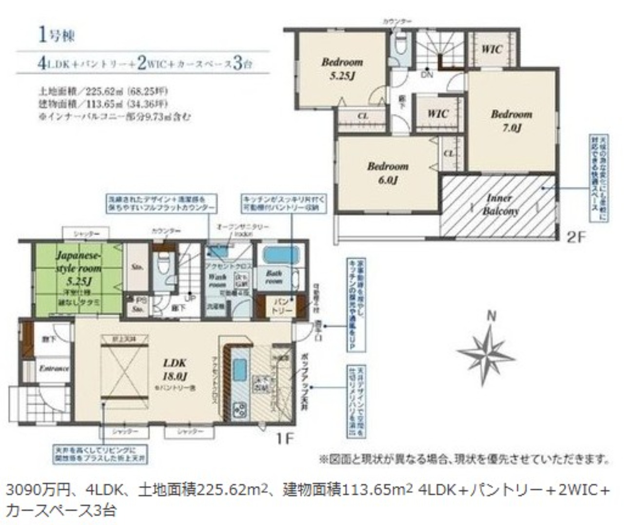 BELS/省エネ基準適合認定書あり / 駐車3台以上可 / 土地50坪以上 / LDK18畳以上 / 市街地が近い / 浴室乾燥機 / 全居室収納 / 前道6m以上 / 和室 / 庭 / シャワー付洗面化粧台 / ワイドバルコニー / トイレ2ヶ所 / 2階建 / 複層ガラス / 温水洗浄便座 / 床下収納 / 浴室に窓 / TVモニタ付インターホン / パントリー(食器・食品の収納庫) / ウォークインクローゼット / IHクッキングヒーター / シューズインクローク / 食器洗乾燥機
