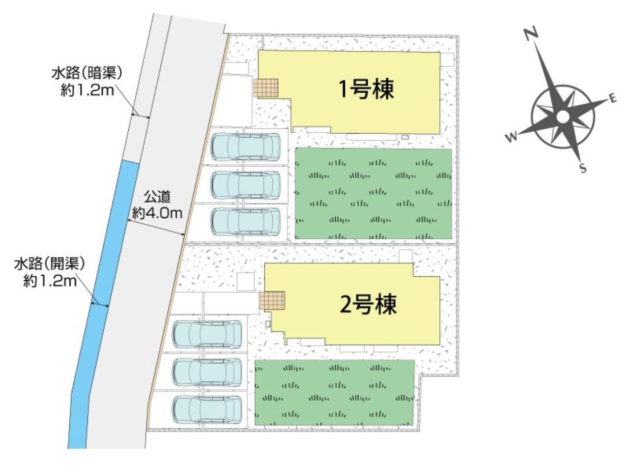 ●車は横並びで3台駐車可能(但し、運転技量車種による)