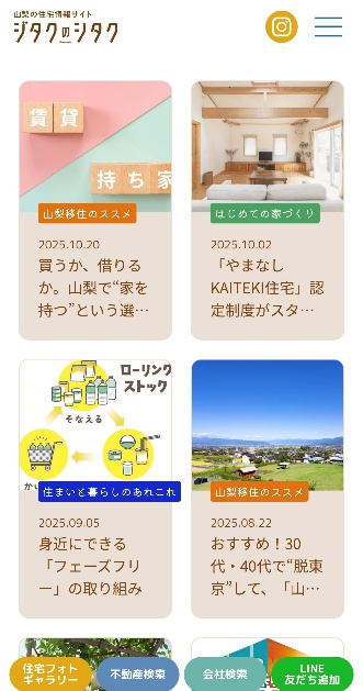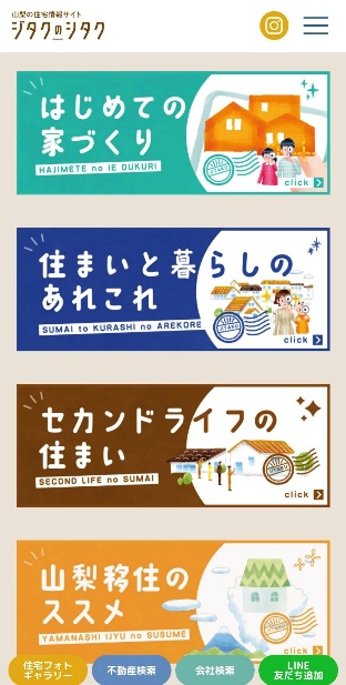 ジタクのシタクの記事コンテンツは、プチリニューアルにより、記事の内容に合わせて「はじめての家づくり」「住まいと暮らしのあれこれ」「セカンドライフの住まい」「山梨移住のススメ」の4項目に分類しました。